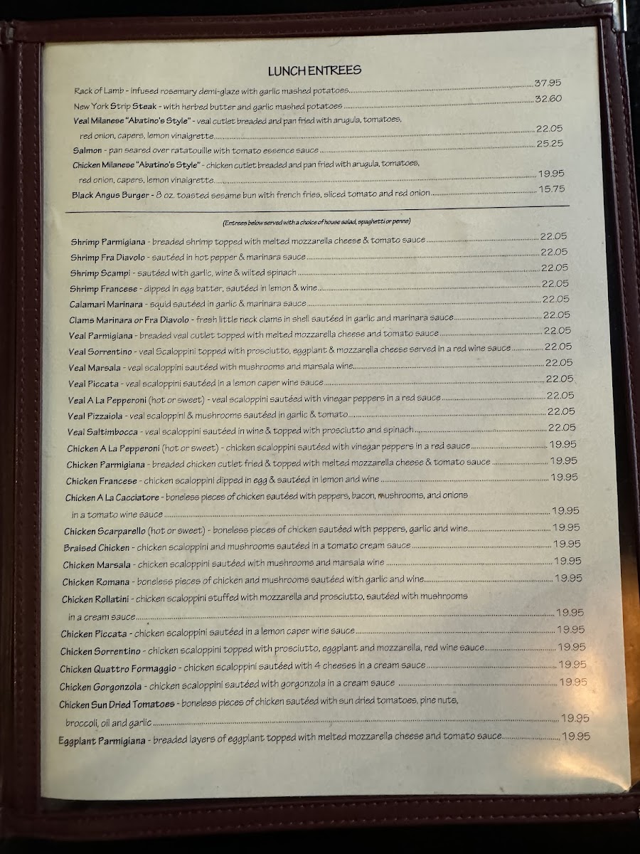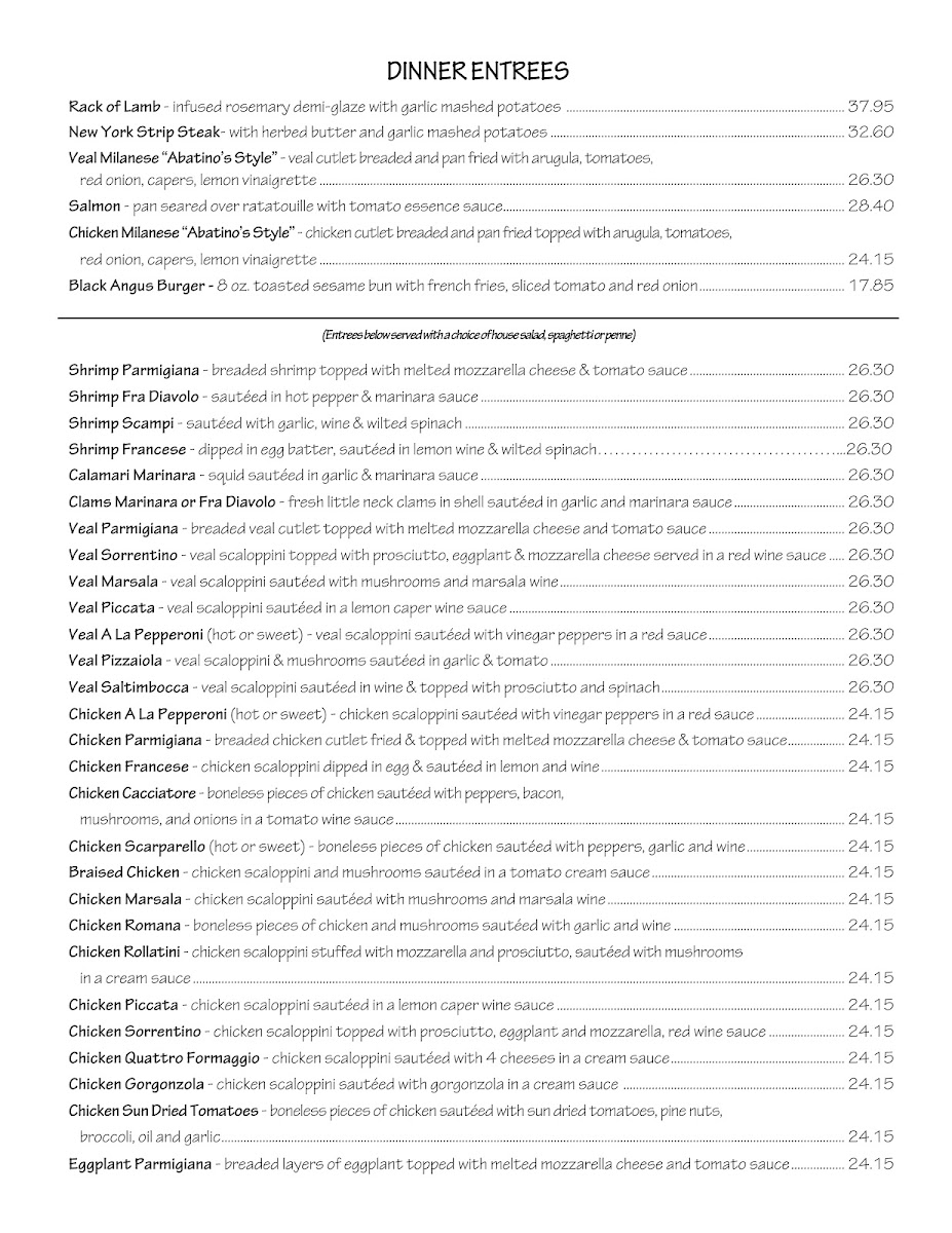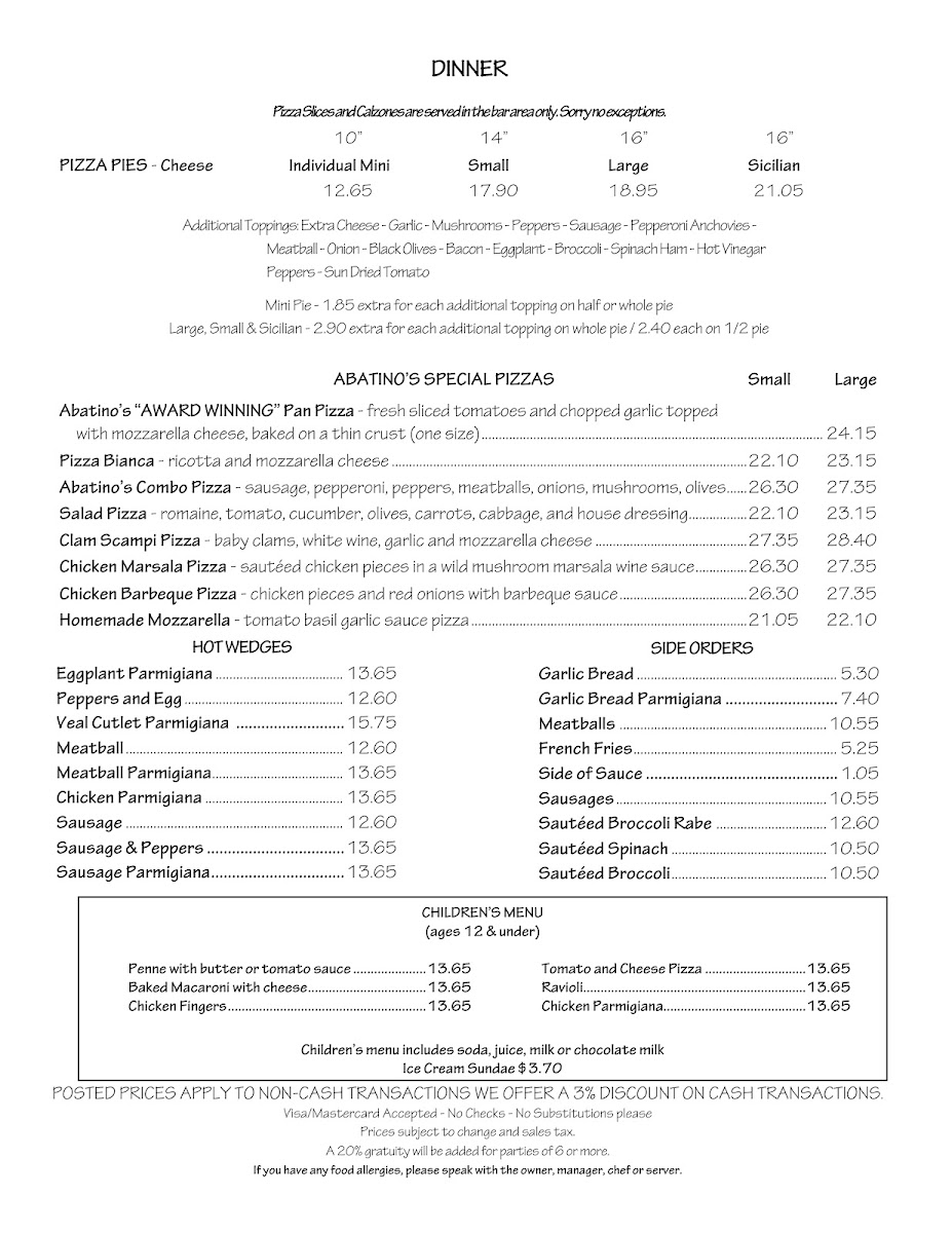 Abatino's Menu